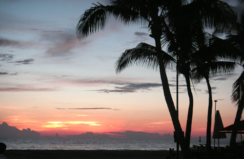 We stayed at the Shangri-La Rasa Ria Resort in Sabah, Malaysia. Our hotel room was perfect as all four of us could share one room. It had a king size bed with two separate day beds for the kids. The breakfast was very good and the pool beautiful. We didn’t spend too much time on the beach this trip as the pool was beautiful and pool service excellent. The beach was perfect for sunsets.