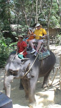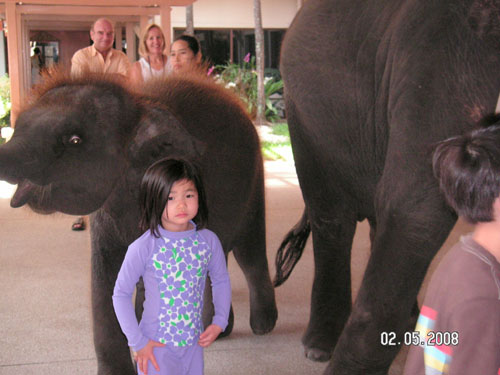 Oh, yes, Phuket. This is one of our favorite places to relax and visit with the elephants. We were leaving for Phuket, Thailand in February, 2008 in the middle of the worst snowstorm in China history. Shanghai didn’t get a whole lot of snow (maybe 6 inches) but you’d have thought it was 20 feet. We got to the airport at 6:30am for our flight and just as we were checking in, they closed the airport. Not a big deal as we just went to the business class lounge and figured on a couple hour wait for the airport to open again. The airport did open about 3 hours later but our plane had not arrived. Then 9 hours later (with 4 very cranky people) we were told our flight was cancelled. This is when the fun began. The airport staff had absolutely no idea what to do with us. We found ourselves weaving aimlessly through the airport following a staff person then waiting in a line that had no beginning. I learned a very interesting fact about Chinese culture that day. As long as there is a line, everyone is happy. It wasn’t until about an hour later that we found out there was no reason to be standing in this line and how we found out is Scott went looking for help. He was told there was another flight at 1:30am we could take but that we’d have to be at the airport at 10:00pm to make sure we were checked in. So fast forward, 34 hours later (delayed in Shanghai for snow and Bangkok for heavy rain) we landed in Phuket.