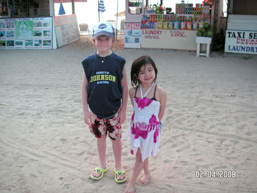 One day we put the kids in the hotel kids club and rented a scooter for $13.00 a day. We drove all over the island which was very interesting as they drive on the left side of the road there. At the time I had a very high fever so I had Scott take me back to the hotel to rest. When he dropped me off he went back out joy riding and wrecked the scooter. About ½ hour later he came back covered in blood, to find me miserable in bed and the kids still in kids club. I ended up going to the doctor for antibiotics and he for pain meds and to have his cuts cleaned out. You’d think that after that day we’d never want to go back to Phuket but the good really out-weighed the bad on this trip.