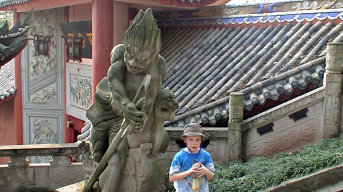 One of the many stops on our trip was in Fengdu – also known as the “City of Ghosts.” The area has many temples, buildings and statues depicting devils and demons and how the Taoist imagined hell in the afterlife. The history lesson is that during the Tang Dynasty, two locally renowned families, Yin (meaning “hell”) and Wang (meaning “king”) were linked through marriage, making them known as Yinwang or the “king of hell.” It was believed that after one died their spirit would visit Fengdu to receive its fate from the “king of hell” for their afterlife. Sinful people would be downgraded to suffer at hell then reborn as animals or cattle. Sinless people enjoyed time in paradise then were reborn as humans after drinking a memory-kill soup to forget all memories of their past life. Locals have since believed that the town is populated by ghosts.